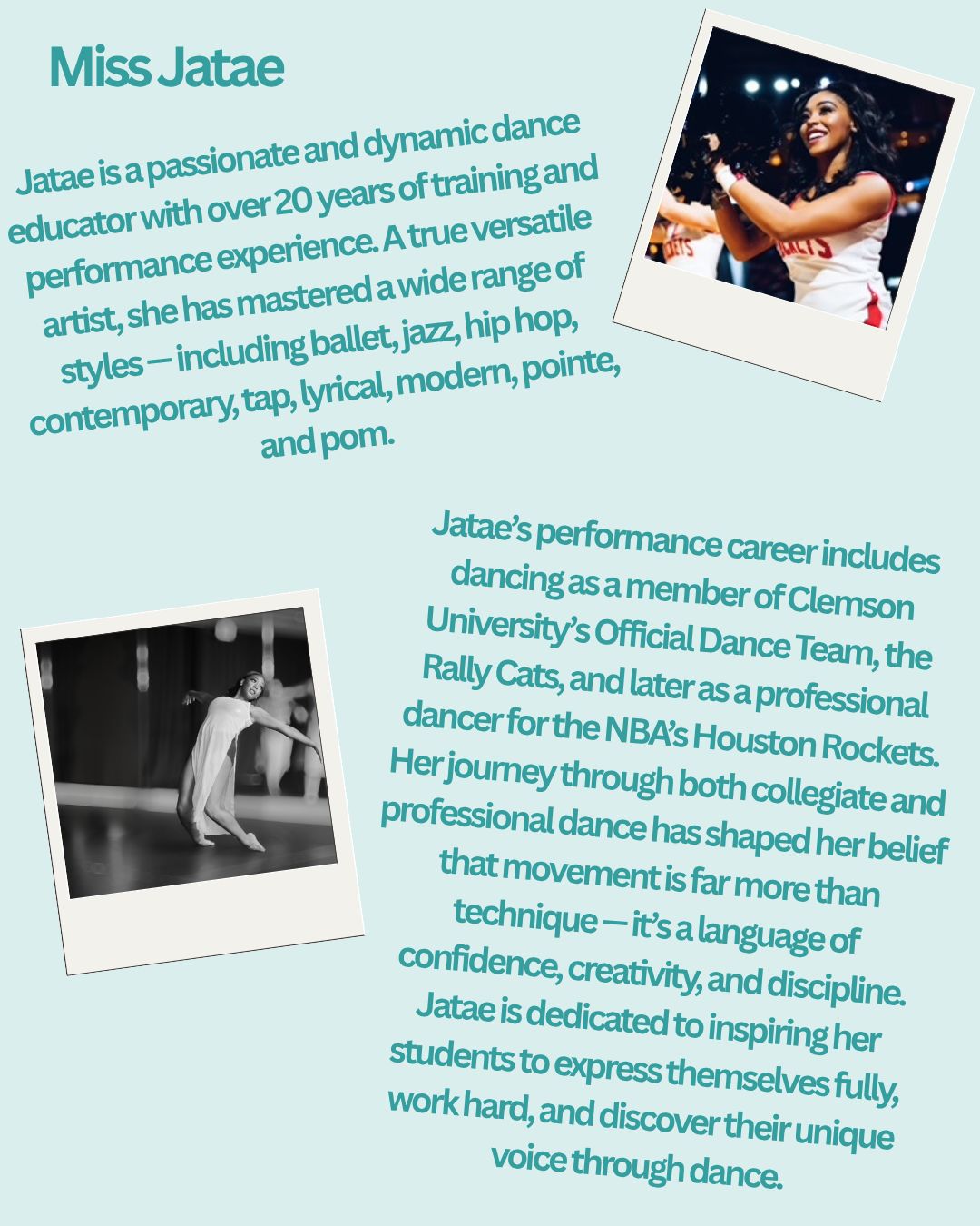 A dynamic, high-energy class where dancers will explore storytelling through movement, combining Broadway-style performance with jazz technique.