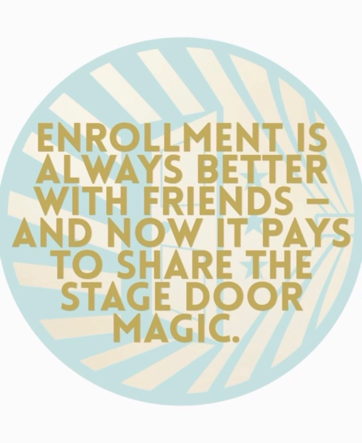 Our Bring a Friend & Save Referral Program is still going strong. It’s the perfect time to invite friends to join the Stage Door community.